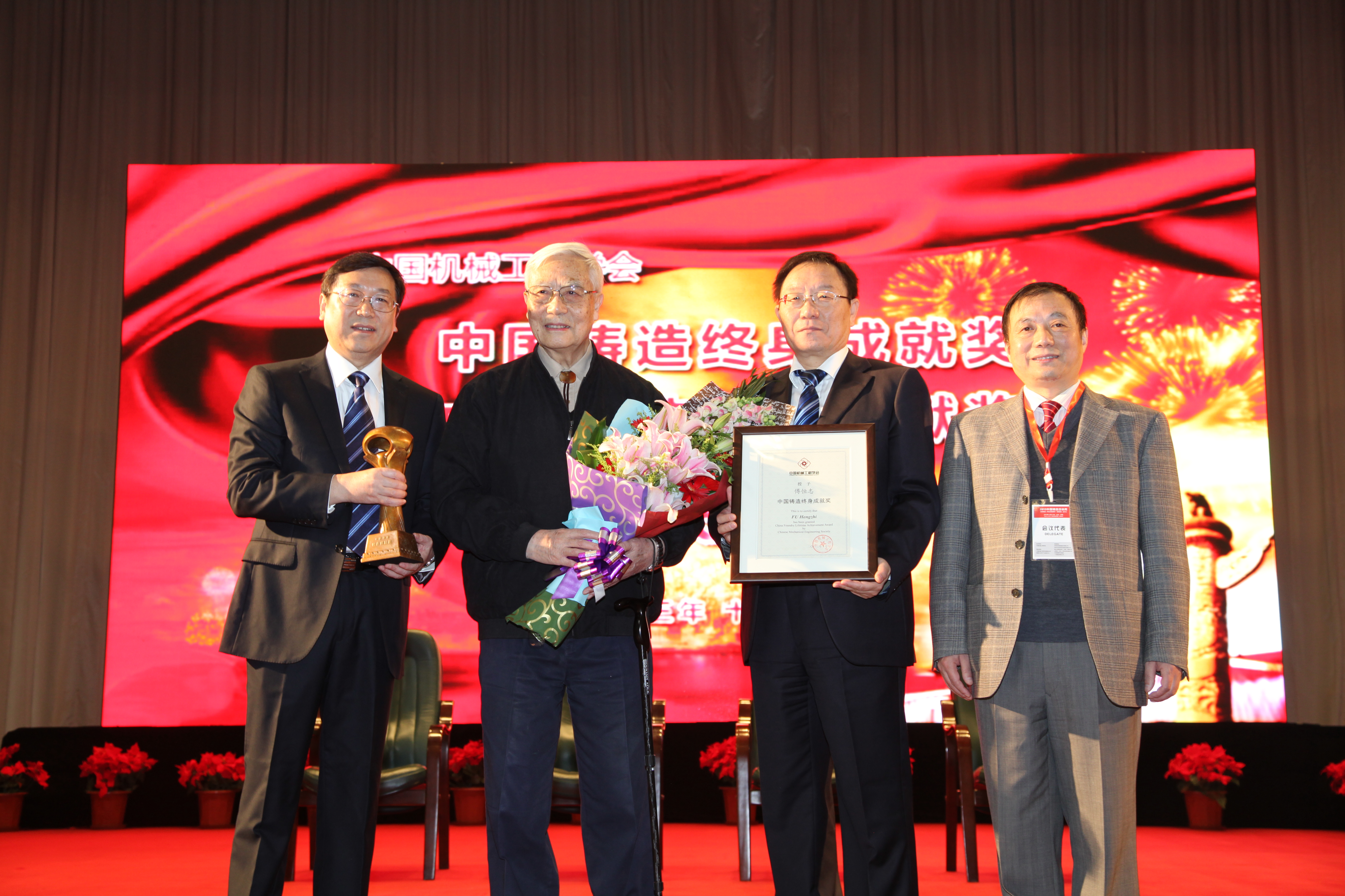 11月2日,2013中国铸造活动周在济南拉开帷幕,李新亚院长应邀出席并为“中国铸造终身成就奖”获得者颁奖。中国工程院傅恒志院士和总院沈阳铸造研究所原总工程师谢明师先生获此项荣誉。